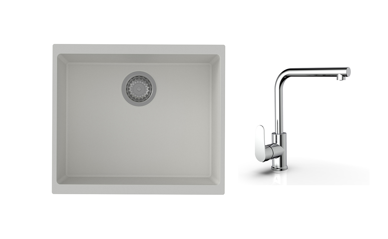K-StrongSinks S3 Set drez Hron 530x460mm granit biely + Batéria Stréva chrom