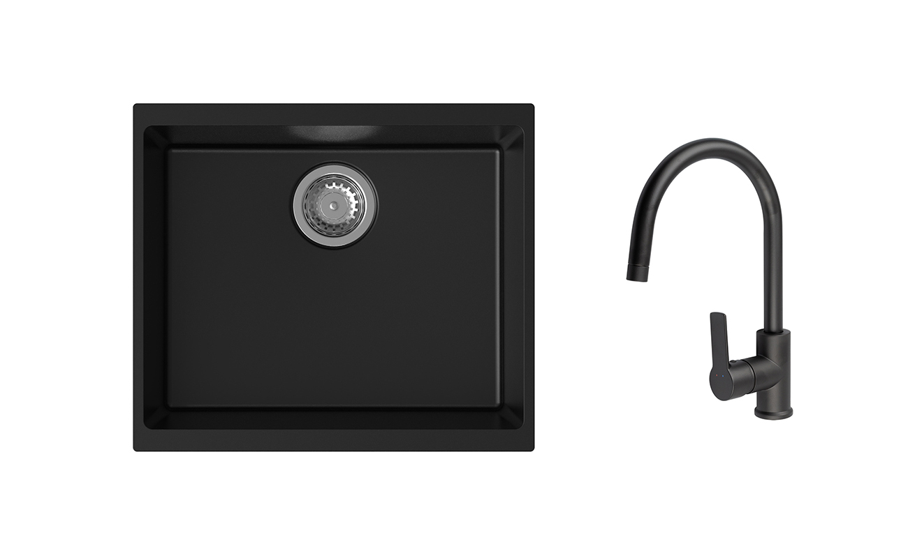 K-StrongSinks S3 Set drez Hron 530x460mm granit čierny + Batéria Loira čierna