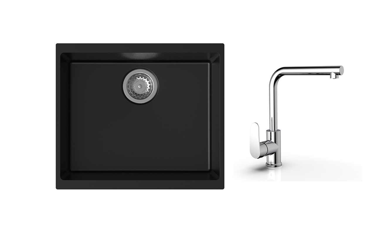 Praktický a cenovo zvýhodnený set granitového drezu a batérie v jednom.