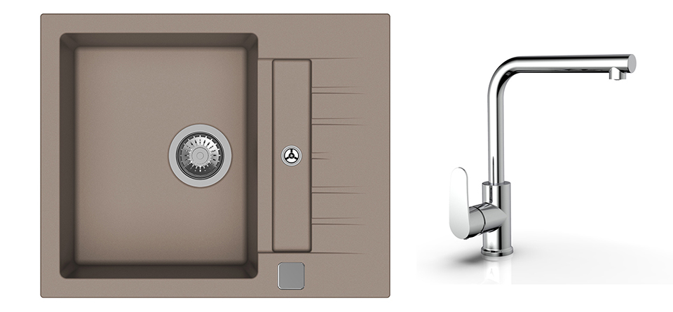 K-StrongSinks S3 Set drez Vardar 615x500mm granit béžová + Bater. Stréva chrom