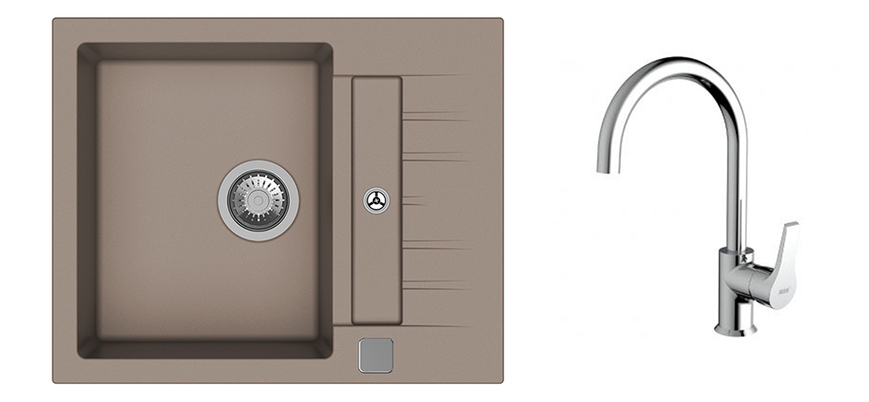 K-StrongSinks S3 Set drez Vardar 615x500mm granit béžová + Baterie Rhona chrom