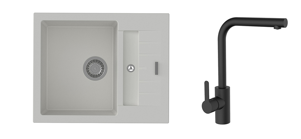 K-StrongSinks S3 Set drez Vardar 615x500mm granit biely + Baterie Ipoly čierna