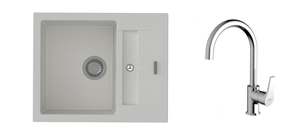 K-StrongSinks S3 Set drez Vardar 615x500mm granit biely + Baterie Rhona chrom