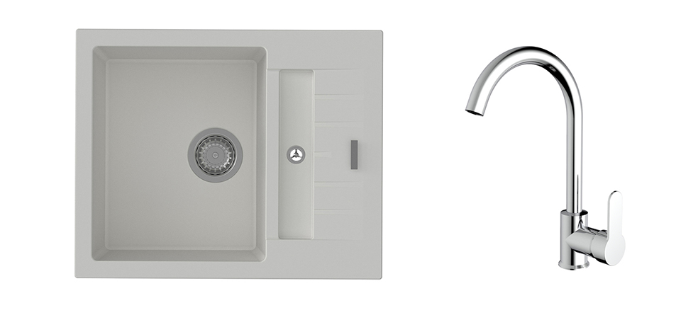 K-StrongSinks S3 Set drez Vardar 615x500mm granit biely + Baterie Seina chrom