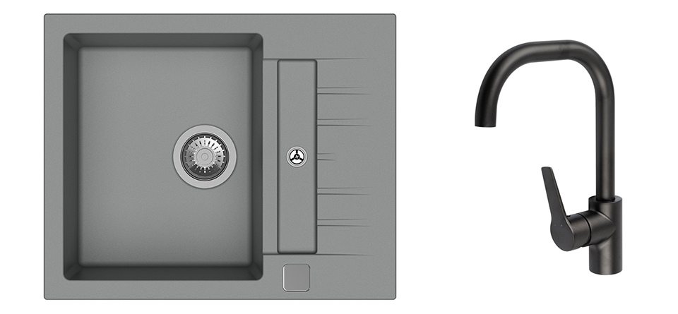 K-StrongSinks S3 Set drez Vardar 615x500mm granit šedý + Bater. Garonne čierna