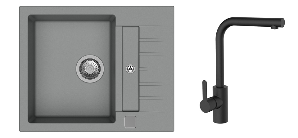 K-StrongSinks S3 Set drez Vardar 615x500mm granit šedý + Baterie Ipoly čierna