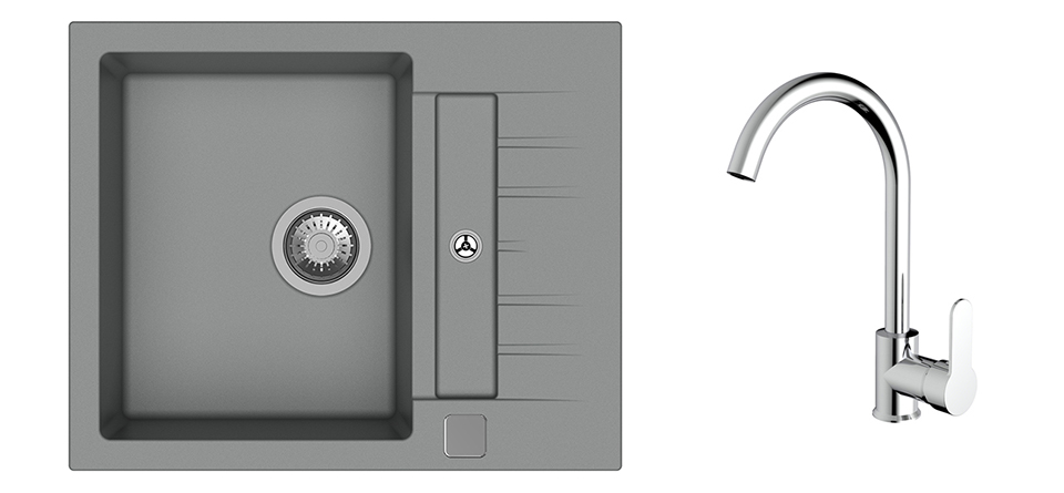 K-StrongSinks S3 Set drez Vardar 615x500mm granit šedý + Baterie Seina chrom