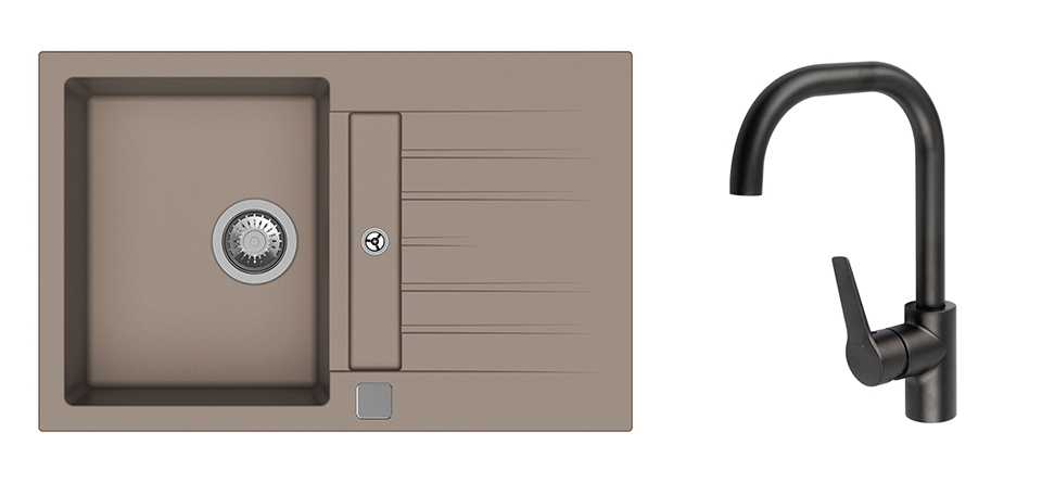 K-StrongSinks S3 Set drez Vardar 780x500mm granit béžová + Bat. Garonne čierna