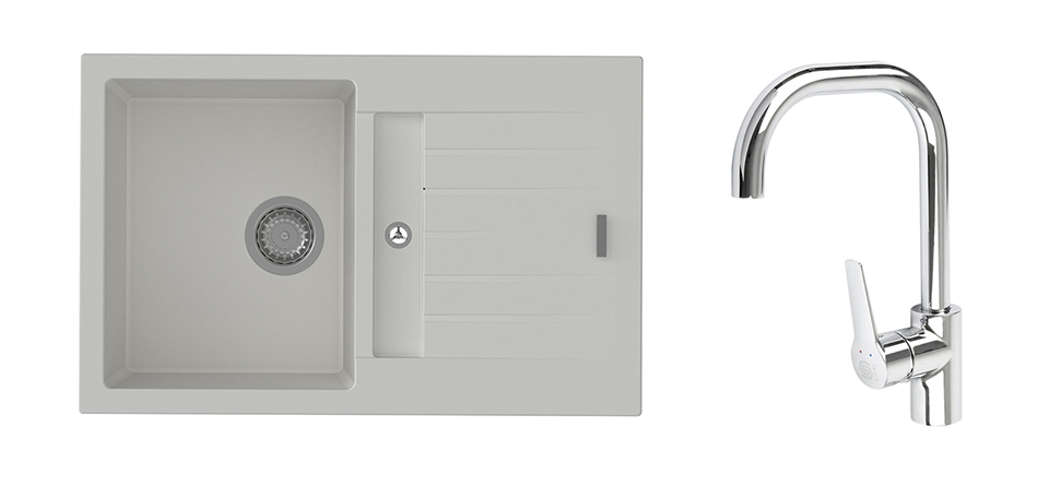 K-StrongSinks S3 Set drez Vardar 780x500mm granit biely + Baterie Garonne chr.