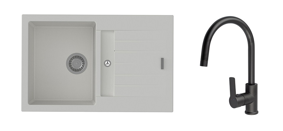 K-StrongSinks S3 Set drez Vardar 780x500mm granit biely + Baterie Loira čierna