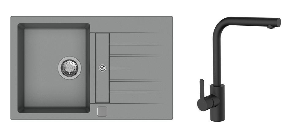 K-StrongSinks S3 Set drez Vardar 780x500mm granit šedý + Baterie Ipoly čierna