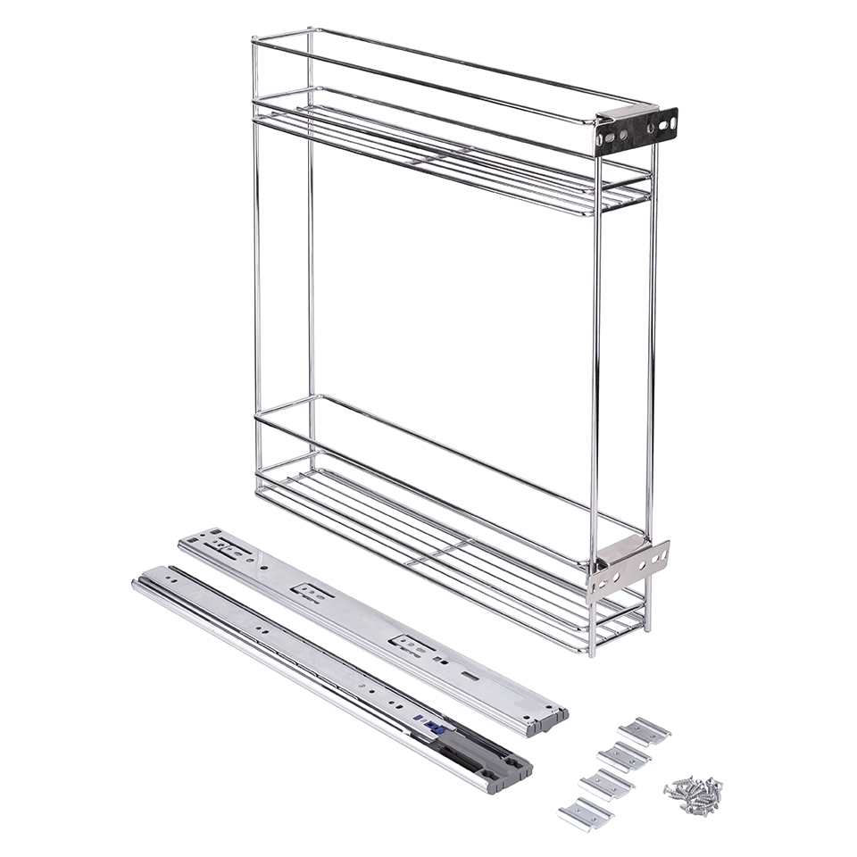 Komplet univerzální bočního dvojkoše (pravo-levý) pro 150mm vnější šíři korpusu s kuličkovým tlumeným výsuvem S3. Rozměry: šíře 88, hloubka 475, výška 470mm. Provedení chrom.