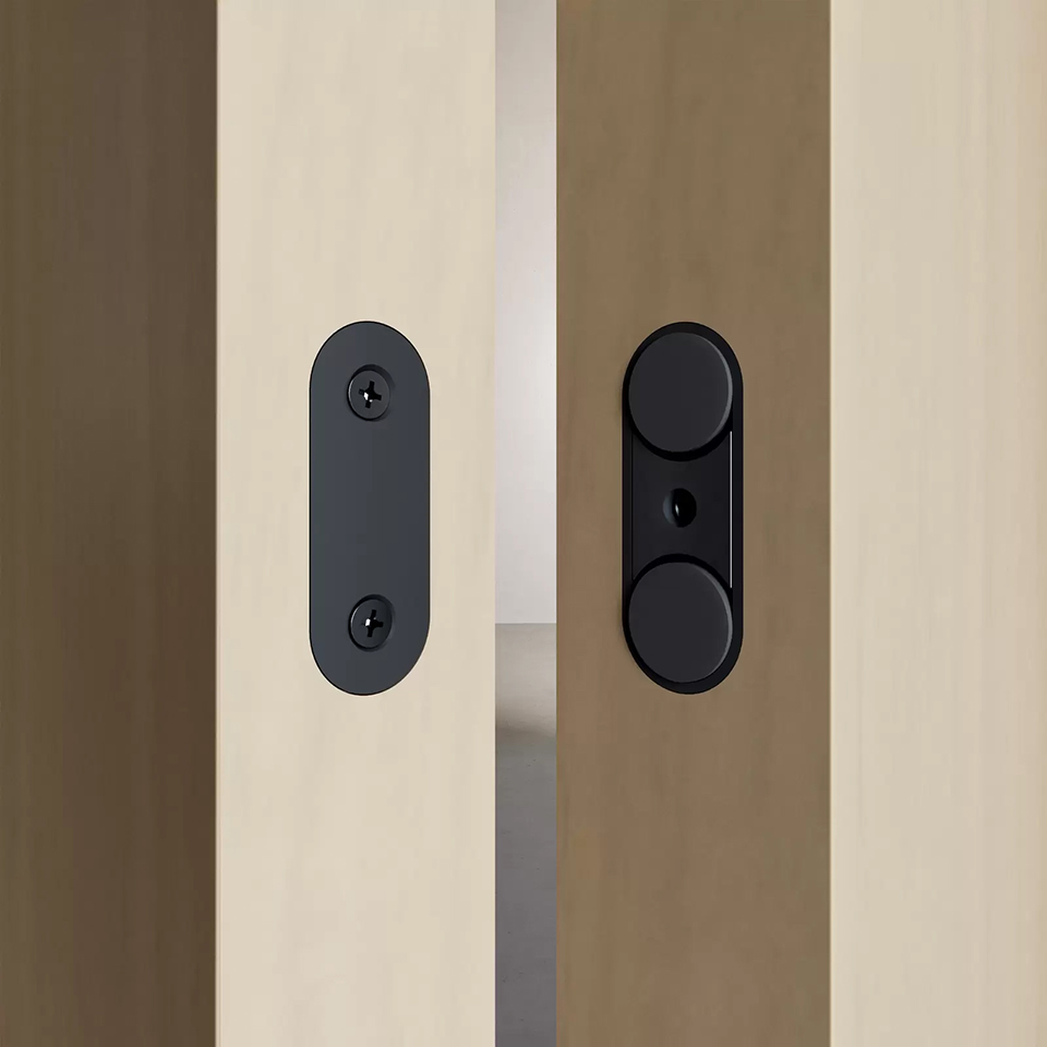 Sada kovania pre 4 krídla s bezfalc. závesmi (12 ks) a magnet. aretáciou (9 ks). Verzia bez spodného vedenia. Pre výšku dverí 2400 - 3000mm, nosnosť 40kg/1 krídlo. Hrúbka materiálu 30 - 45mm. Farba čierna (práškovo lakovaná).
