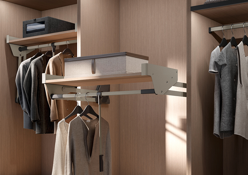 KES Conero sklopná šatníková tyč s policou, LW 455-648mm, 18kg, Champagne gold
