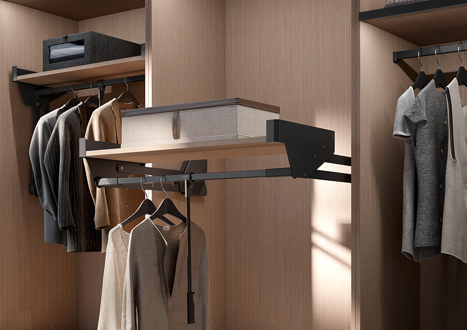 KES 238284 Conero sklopná šatníková tyč s policou, LW 815-1008mm, 18kg, čierna