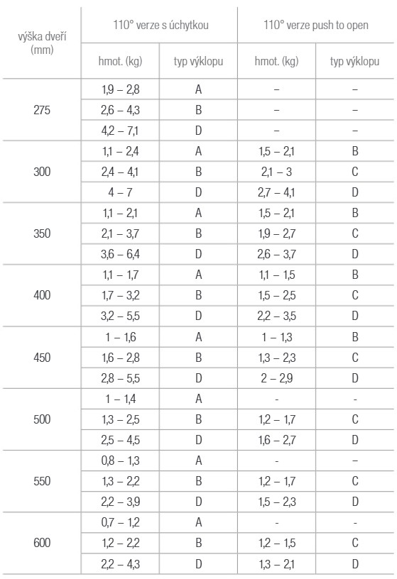 Pre verziu otvárania s úchytkou doporučujeme použiť závesy s tlmením .
