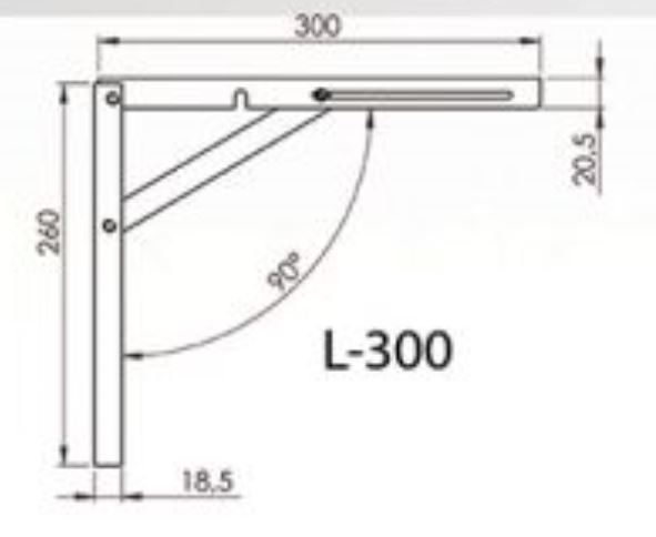 Sklopná konzola s dĺžkou ramena 30 cm v satinovej farbe (komaxit). Nosnosť 100 kg/pár. Ideálne pre sklopné police, malé stoly a iné. Pre úsporu miesta je možné stolovú dosku, či odkládaciu dosku sklopiť. So vzperou pre vyššiu nosnosť. Splňuje bezpečnostné a vytrvalostné atesty podľa normy PN-EN 12521:2009 i PN-EN 15372:2010. Vzdialenosť police od steny pri úplnom sklopení je 30mm.