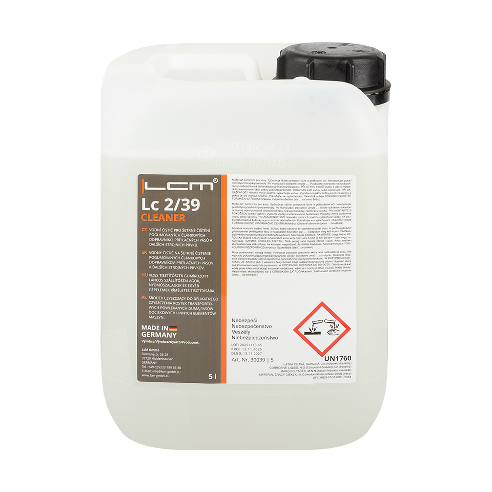Čistič Lc 2/39 je speciálně vyvinutý produkt pro efektivní a šetrné čištění řetězových desek, přítlačných pásů a strojních prvků.Nečistoty, které mají negativní vliv na proces (špatné spojení obrobků) a kvalitu obrobků (případné otisky a poškození), jsou účinně odstraněny vodným čističem, aniž by to ovlivnilo materiály.