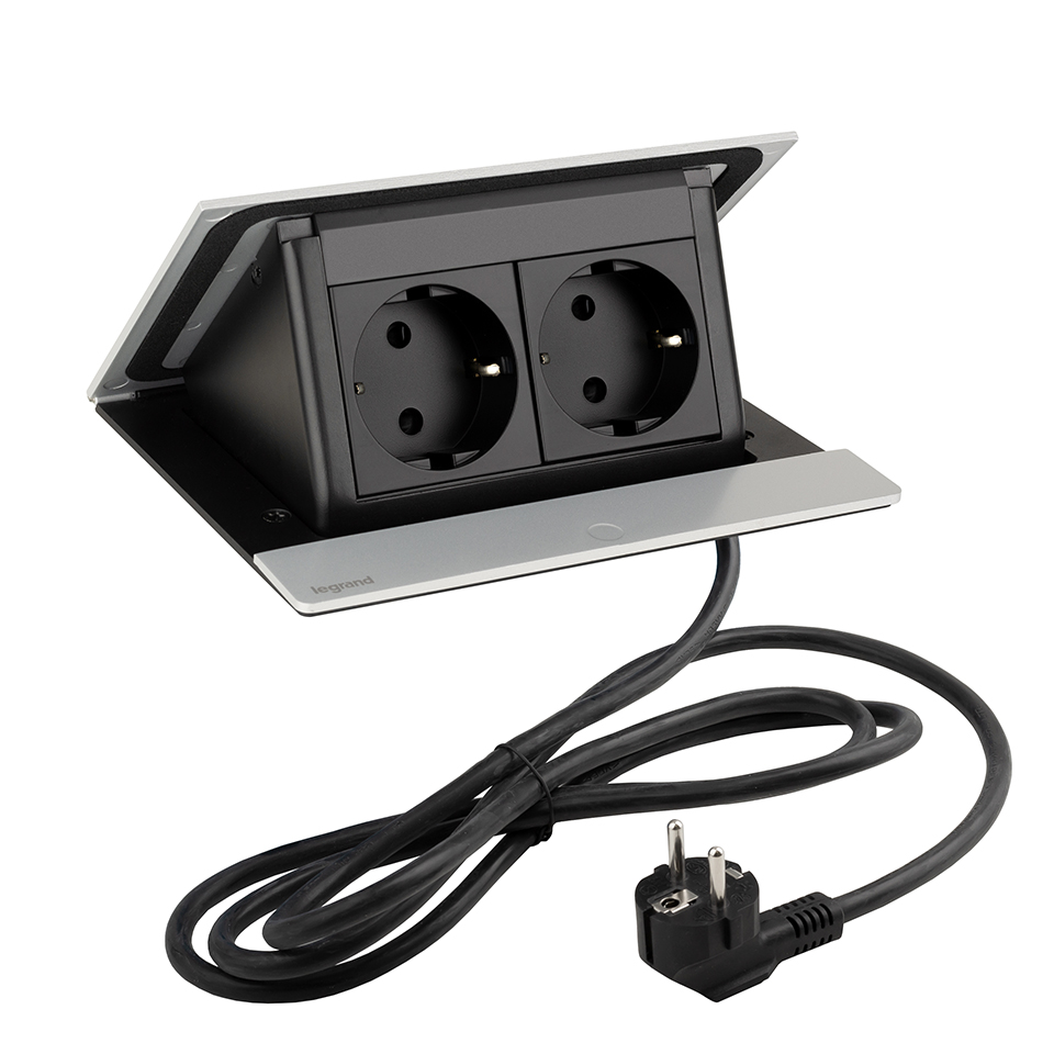 LEGRAND PopUp, 2x230V, eloxovaný hliník, SCHUKO