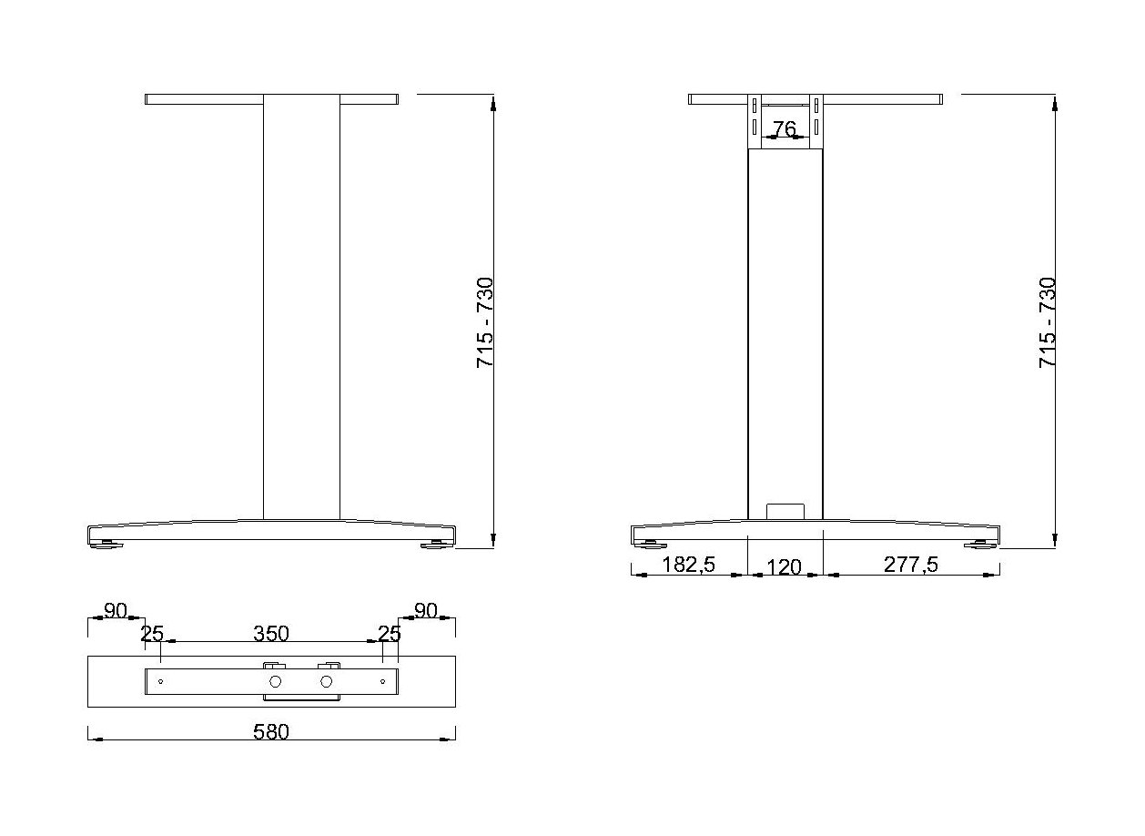 Podnož stolu krajná (základňa so skosenými koncami, šírka: 80 mm), Bočné výplne súčasťou.