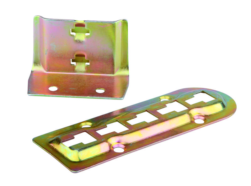 Súprava kovania postele typu VARIFIX. Súprava sa skladá z 1 kusu bočnej platničky a 1 kusu uholníka.