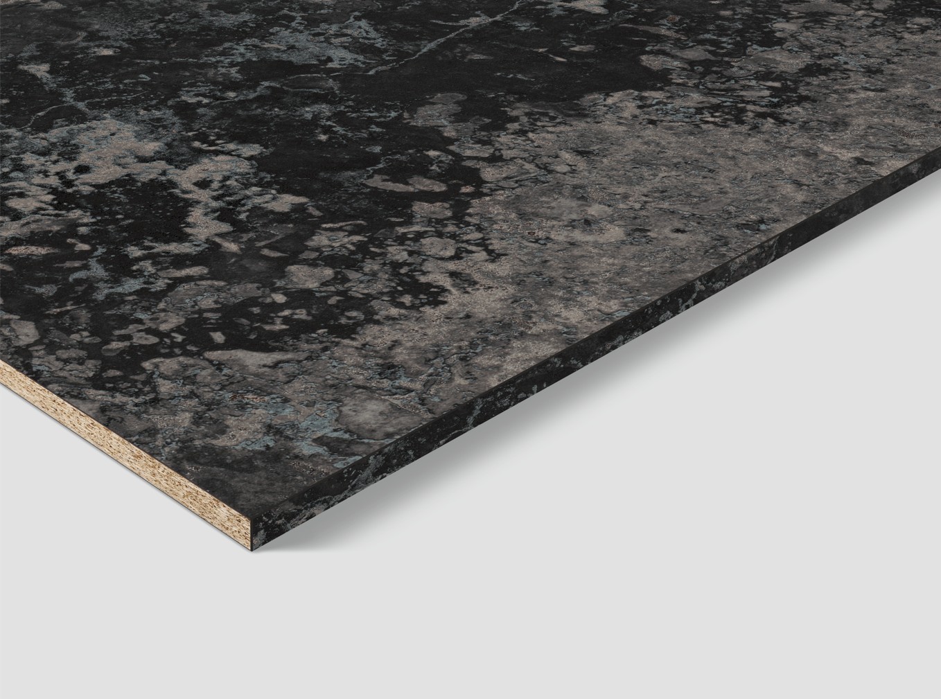 Pracovná doska PerfectSense Ambiance s rovnou hranou (ABS) pre kuchynské linky a plochy pre prípravu jedál. Povrch PerfectSense Ambiance jedinečným spôsobom kombinuje zamatovo matný vzhľad rady PerfectSense s výraznými prvkami zrkadlového lesku a autenticky napodobňuje luxusné mramorové a žulové povrchy.