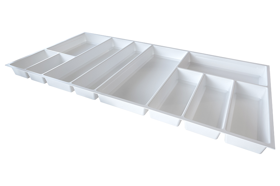 Vložka príborníku SKY pre rôzné typy zásuviek. kombinácie pevných priehradok a pohyblivých prepážok (k dokúpeniu zvlášť). Pre rôzné typy zásuvkových systémov - StrongMax, Legrabox, alebo i iné typy (možno zúžiť a skrátiť). farba biela.