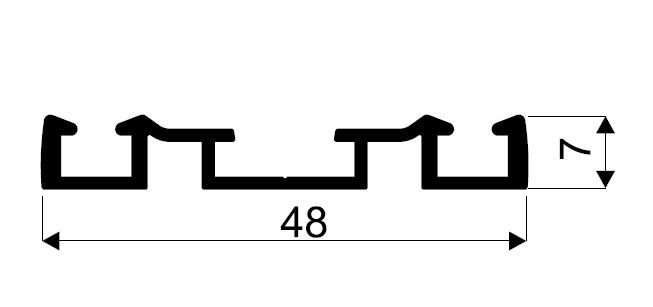 Spodné vedenie pre systém Blue. Na zakrytie skrutiek slúži záslepka - 216362 SEV-záslepka spodného vedenia Simple a Blue, materiál plast. V katalógu 18/19 na strane 5.61 je zle uvedená šírka. Správne má byť 48mm.