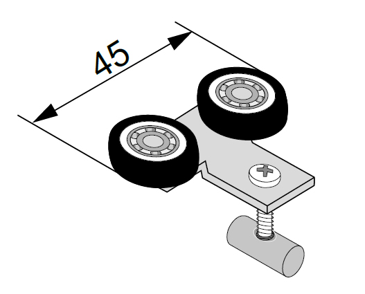 Horný vozík pre úch.lištu Master a Star a horné vedenie Comfort. 1 krídlo - 2 vozíky. Pre DTD 10mm. Pôvodná karta - 100108. 1x 229442 = 2x 100108.