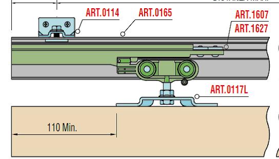 Tlmič dorazu,ktorý umožňuje plynulé a tiché dovieranie dverí.Používa sa pre posuvné naložené dvere Sisco 1300,posuvné vstavané skrine Sisco 1200 a posuvné interiérové dvere Sisco 100