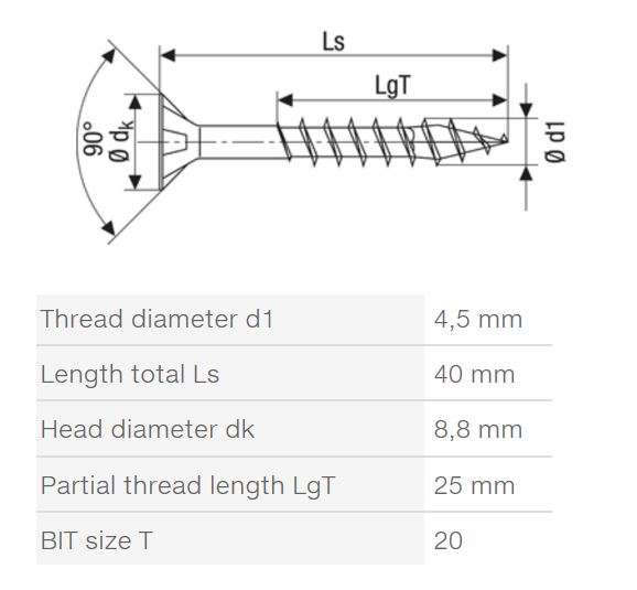 SPAX skrutka 4,5x40/25 zápustná hlava TXS,W,4C MH, čiastočný závit