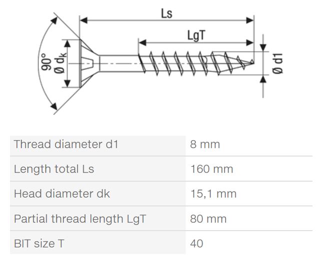SPAX skrutka 8x160/80 zápustná hlava TXS,W,4C MH, čiastočný závit