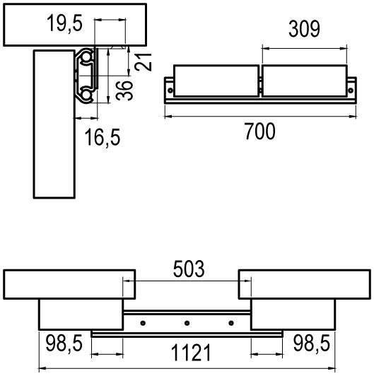 Stolový pojazd 355/070 dĺžka 700 mm