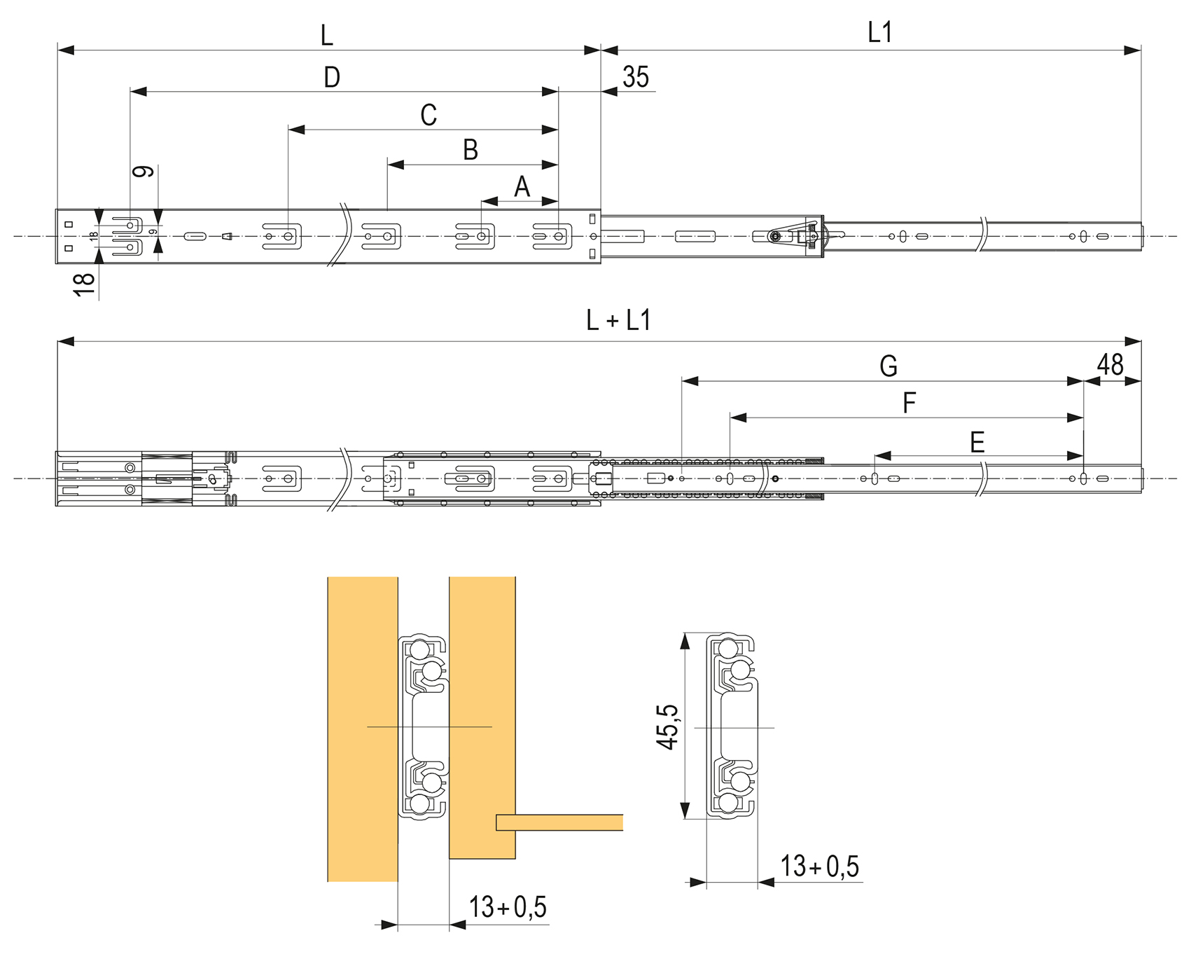 Menovitá dĺžka a nosnosť výsuvu je uvedená v názve produktu.