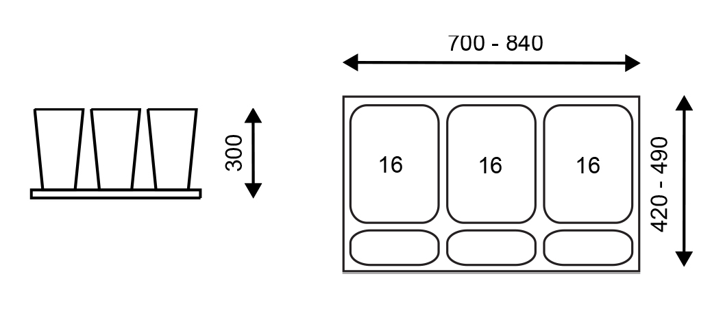 StrongBins sorter 3x16 l vložený do zásuvky 800 - 900 mm, antracit