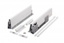 Výsuv s tlmením a dutou bočnicou vrátane 1 páru relingov. Dĺžka 400mm, výška 204(225mm). Nosnosť do 35 kg. Farba biela. Všetko potrebné pre zostavenie čelnej zásuvky v tejto sade. Pre vnútornú zásuvku je nutné objednať čelný panel.