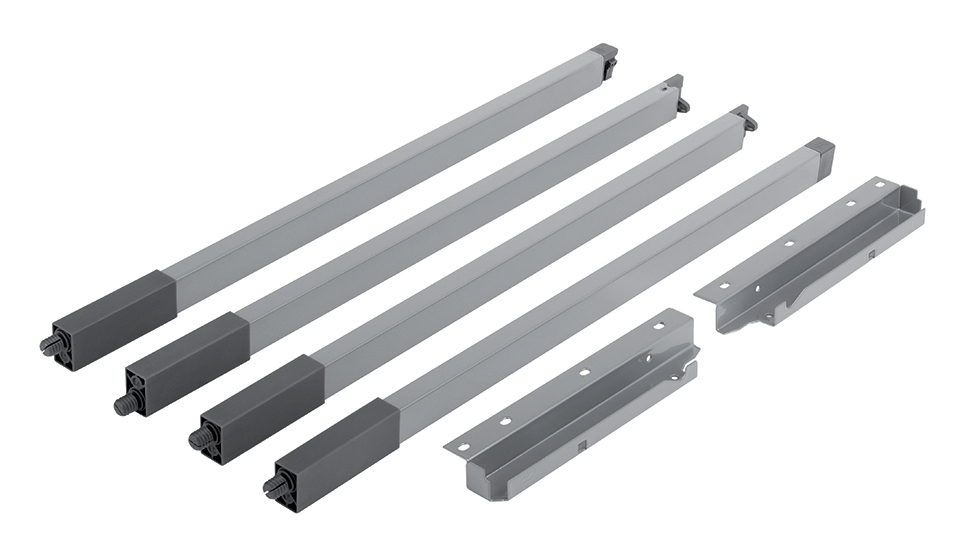 Sada dvoch párov hranatých relingov H204, dĺžka 350mm farba šedá. Sada obsahuje zadné príchyty H204 pre uchytenie relingov, dva páry hranatých relingov (horný a stredový), s čelnými príchytmi na vrut i na hmoždinku