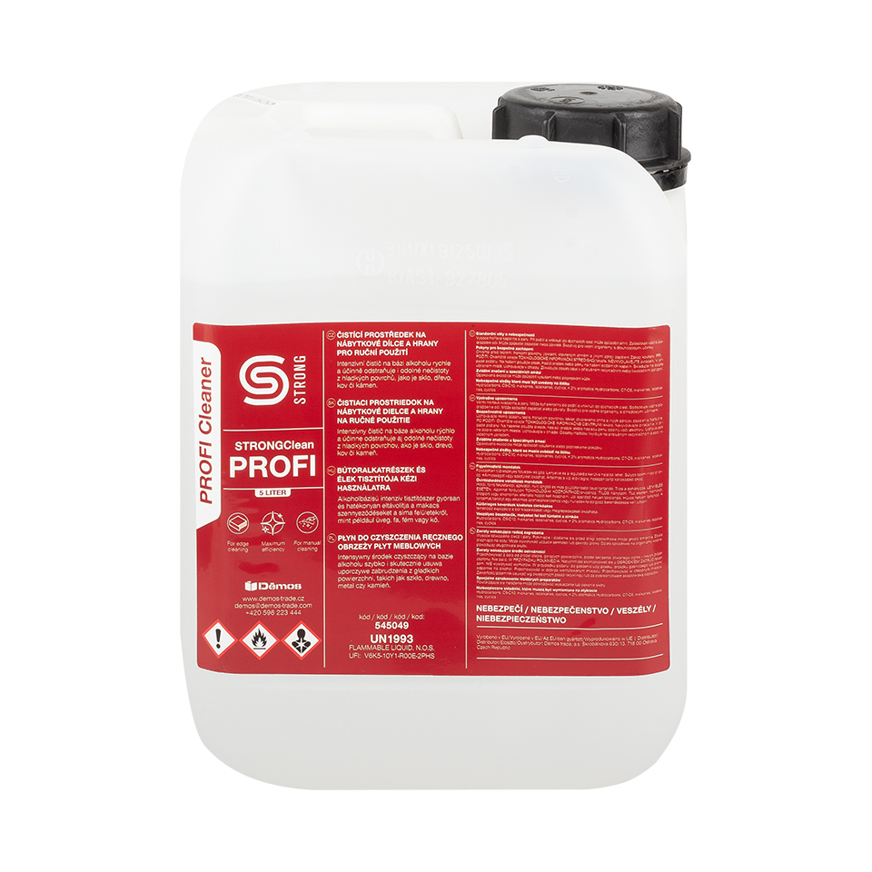 StrongClean PROFI je intenzívny čistiaci tekutý prípravok na báze alkoholu s citrusovou vôňou na odstraňovanie najodolnejších nečistôt. Vďaka vysokému obsahu rozpúšťadiel rýchlo rozpúšťa nečistoty, ako sú zvyšky gumy, bitúmen, živice, oleje, zvyšky lepidiel, oleje, fixky alebo odreniny. Na finálne dočistenie matných a lesklých povrchov použite StrongClean FINISH.