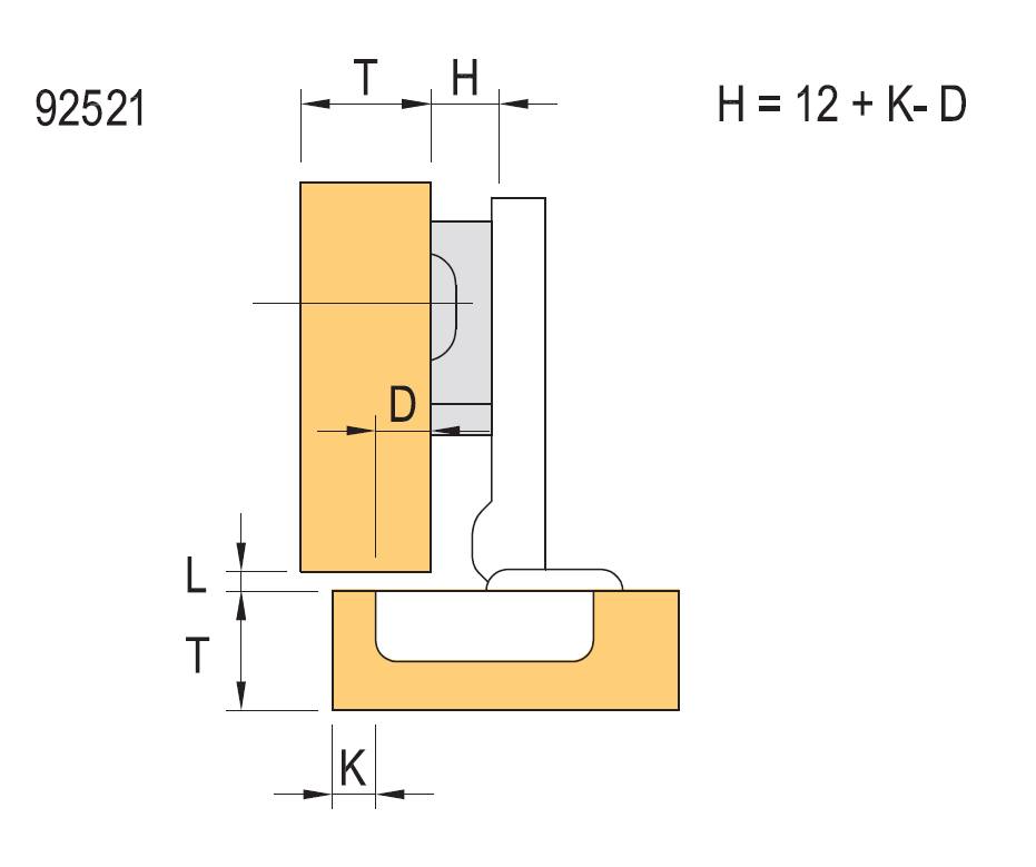 Záves mini naložený na vrut + podložka Uhol otvorenia 95°