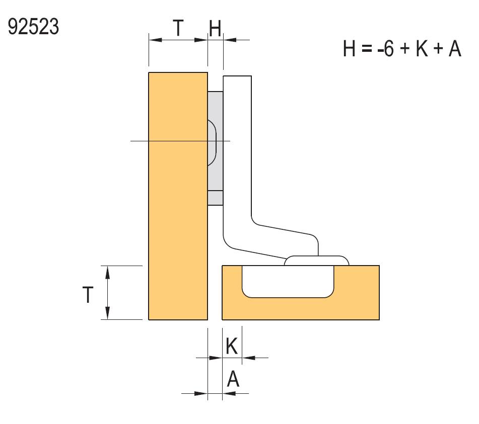 Záves mini vložený na vrut + podložka Uhol otvorenia 95°