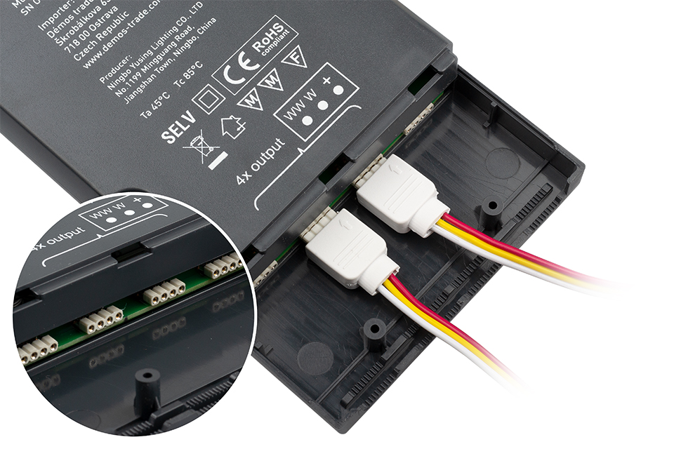 • rozbočovač pre pripojenie až 4 vetiev LED svetiel