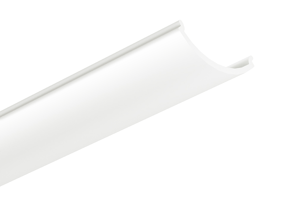 Krycia lišta nacvakávacia (nasadenie zhora) mliečna. Materiál – plast. Priepustnosť svetla 70 %.