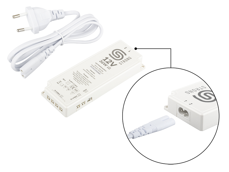 Napájací zdroj StrongLumio s integrovaným rozbočovačom a zdierkou 3PIN pre pripojenie senzora/vypínača si kladú za cieľ zjednodušiť montáž osvetlenia nábytku, skrátiť čas inštalácie a tým celkovo spríjemniť prácu so svetlami značky StrongLumio.