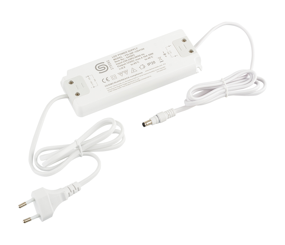 Napájecí zdroj plochý pro LED světla a LED pásky s napětím 12V. Výkon max. 50W, max. proud 4,16 A, napájecí napětí 220 - 240V.