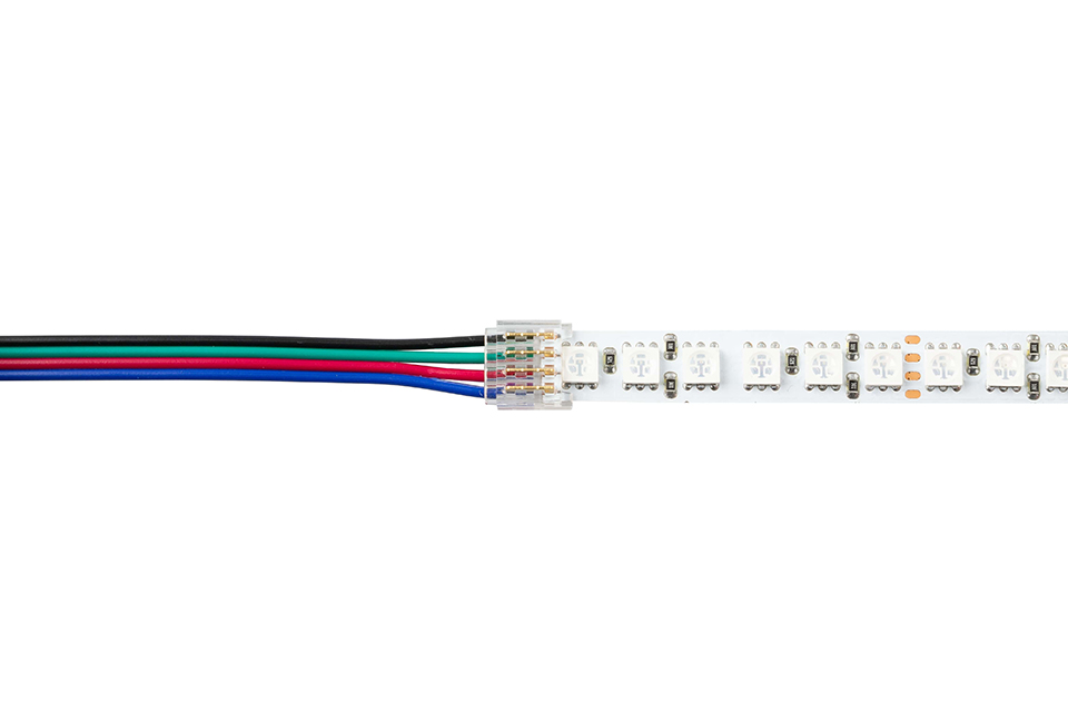 Spojka pre spojenie RGB LED pásik - kabel (čtyřlinka). Vhodné pre LED pásiky šírky 10mm viď. súvisiaci sortiment. Spojka sa na LED pásik nasadí a pomocou klieští sa pritlačia kontaktné tŕny do LED pásiku, kde sa tŕny potom do LED pásika zarežú. Spojka je teda určená pre jedno použitie. pre použitie v profiloch o min. šírke 12mm a výške 5,1mm.