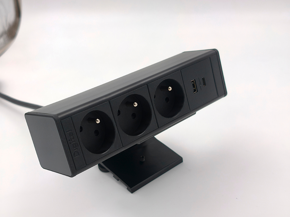 StrongPower elektrická zásuvka doskup, 3x Francúzska, USB, čierna