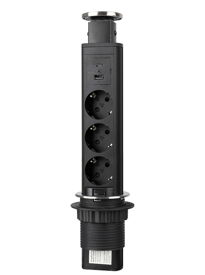 Kovanie a doplnkový materiál Kancelárske vybavenie Kancelárske elektrické zásuvky StrongPower elektrická zásuvka vyťahovacia, 3x 230V Schuko, USB A+C, čierna