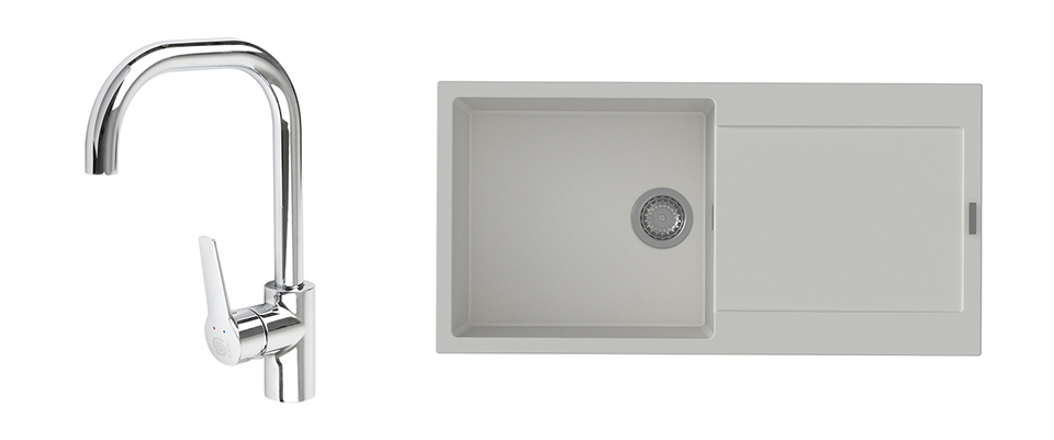 StrongSinks S3 Set drez Zala 1000 1000x500mm granit biely + Baterie Garonne chr.