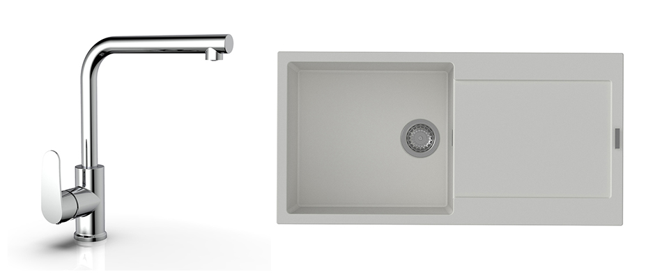 StrongSinks S3 Set drez Zala 1000 1000x500mm granit biely + Baterie Stréva chr.