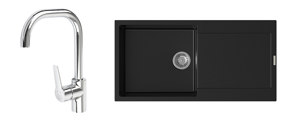 StrongSinks S3 Set drez Zala 1000 1000x500mm granit čierny + Baterie Garonne chr